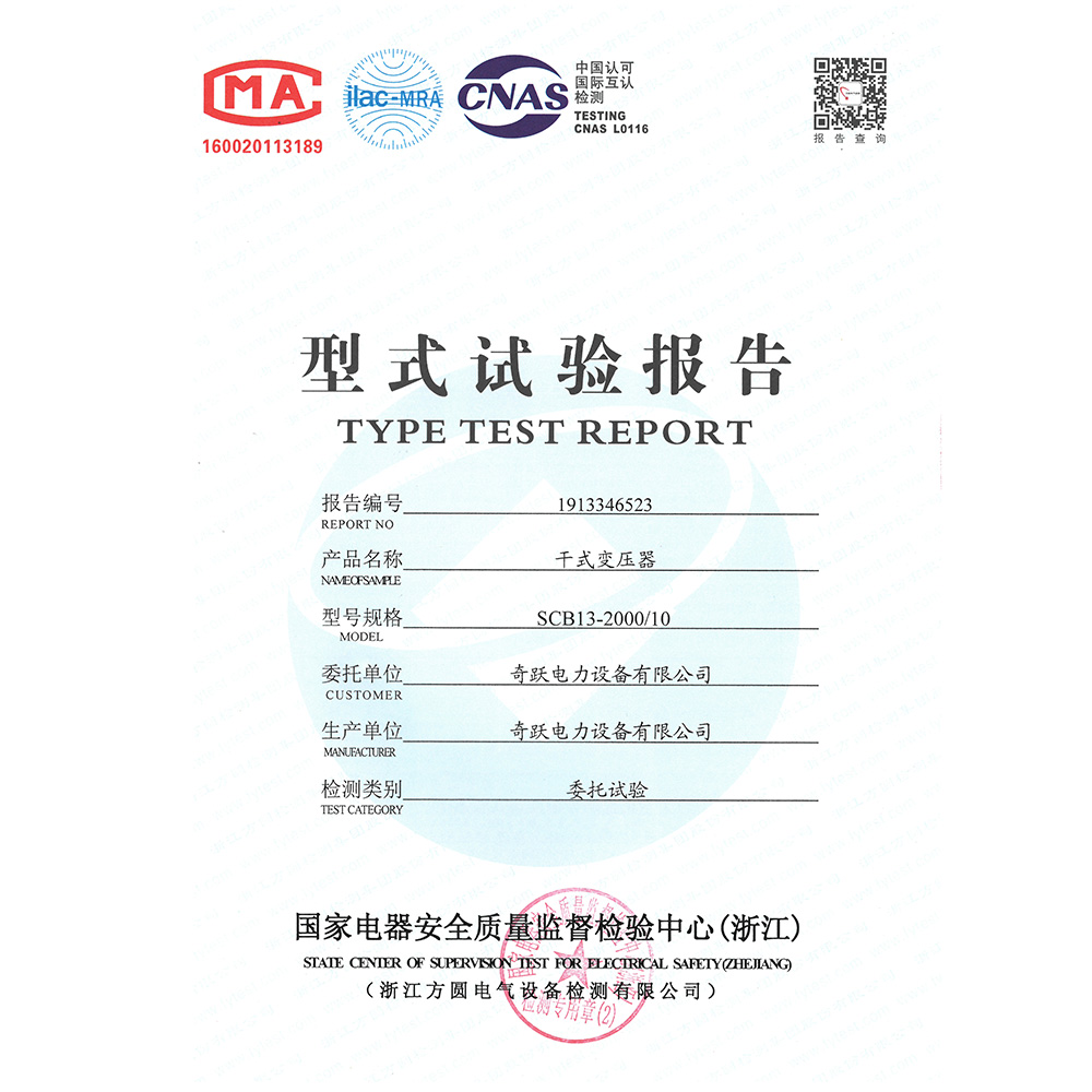 SCB13-2000/10干式变压器 试验报告