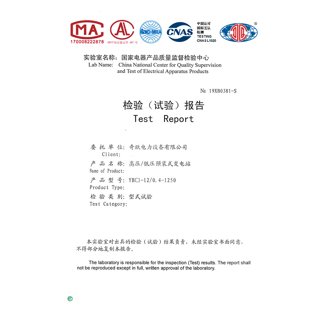 YB□-12/0.4-1250高压/低压预装式变电站 检验报告